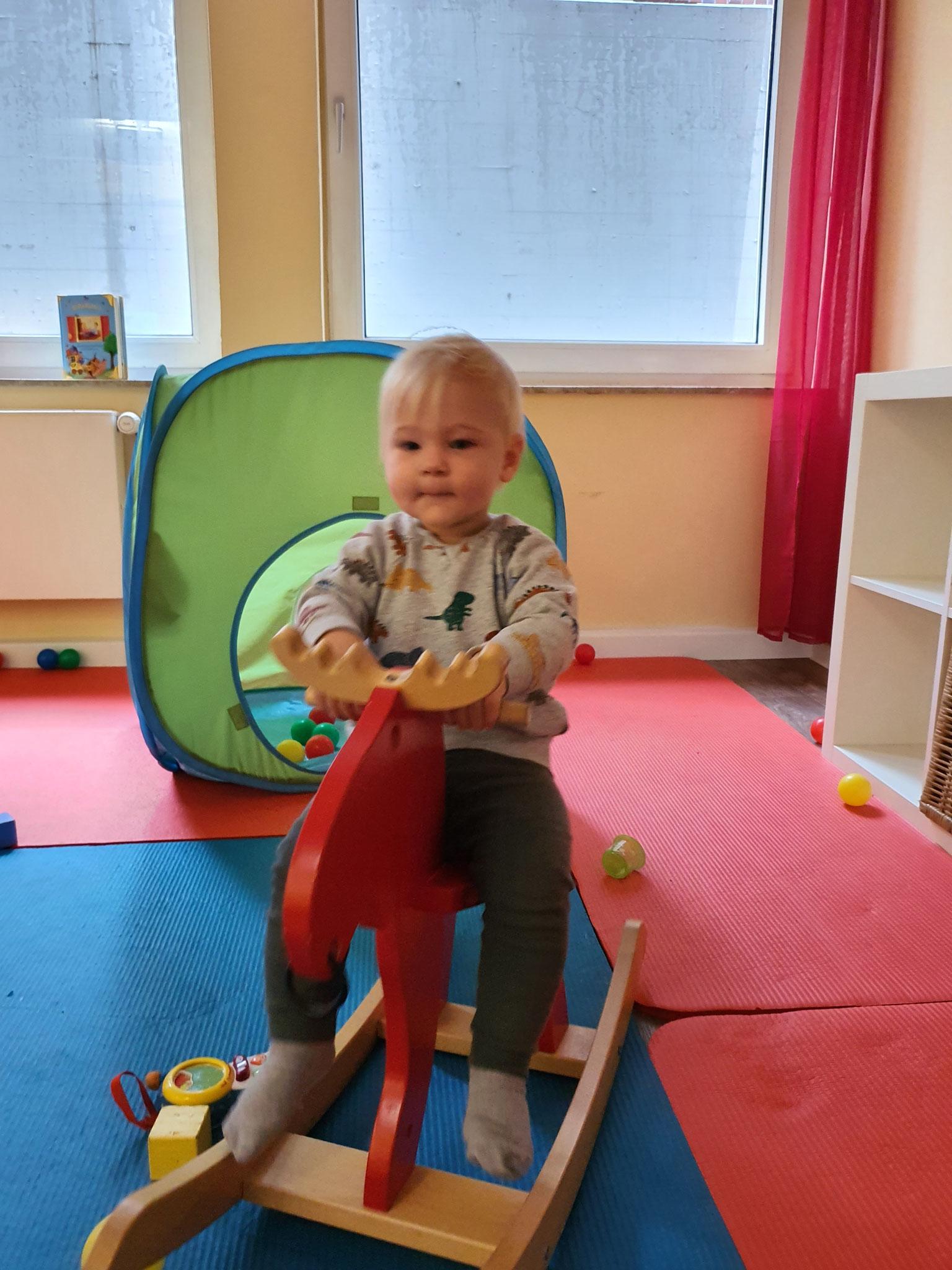 Ein warmer, mit altersgerechten Lernmaterialien vorbereiteter Raum wartet auf unsere Miniforscher. Sie entdecken, turnen, hüpfen, laufen, spielen miteinander, allein, zusammen oder mit Euch, als Eltern. Es wird gesungen und getanzt. Diese Neugier und das Spielen fördert die Entwicklung, stärkt die Sinneswahrnehmung. Fachgerecht begleiten wir Sie und Ihre Babys dabei. So bekommen Sie Ideen für zu Hause, lernen Gleichgesinnte kennen. Es gibt genügend Zeit für einen gemütlichen Austausch mit anderen Eltern.